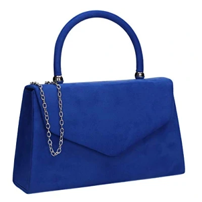 Kendall Suede Velvet Envelope Womens Party Prom Wedding Clutch Bag Purse Royal Blue One Size