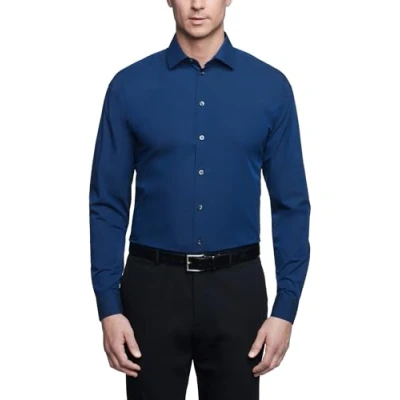 Kenneth Cole Men's Dress Shirt Regular Fit Solid, Medium Blue, 15" 15.5" Neck 32" 33" Sleeve