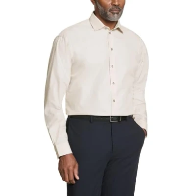 Kenneth Cole Men's Solid Dress Shirts, Almond, 14" 14.5" Neck 32" 33" Sleeve