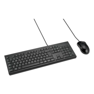 Kensington K75452ES KM100 EQ Wired Keyboard and Mouse Set for Desktop Laptop PC, Splash proof Design, Compatible with Windows Mac, QWERTY ISO, Black