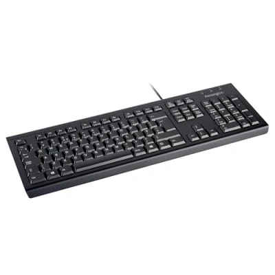 Aimed at reducing our environmental impact by consuming sustainable materials, the outer case and keycaps are composed of 64% post-consumer recycled content (PCR)* Designed to maximise productivity, the ISO layout with responsive tactile keys for all-day comfort is organized into 6 rows with a numeric keypad to support productivity. The wired USB-A connection provides a convenient and reliable experience The full size keyboard provides a reliable plug-and-play Ideal for the touch typist, responsive tactile keys support improved typing accuracy, increasing typing speed and reducing fatigue Spill-Proof Design with a sealed membrane ensures that any spills of water, coffee or other liquids will not damage the electronics and can be simply wiped dry. The wipe down protection meets the MIL-STD-810H Method 504.3 Contents: 1 x Kensington KB100 EQ Wired Full Size Keyboard with ISO layout (Wired USB-A connection eliminates need for batteries); compatible with Windows and macOS, 3-Year limited warranty included, Black (K63727UK)