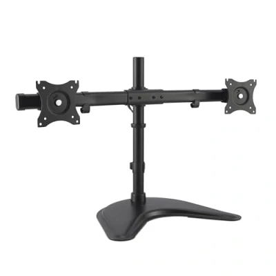 Professionals often experience increased productivity when using dual monitors, but they frequently encounter challenges when setting up and adjusting their screens.The SmartFit™ Ergo Freestanding Dual Monitor Stand combines the convenience of a monitor stand with the flexibility of a monitor arm, eliminating the need for complex setups. With pan, tilt, and swivel adjustments, users can easily customize their viewing angles for optimal comfort and productivity, creating a more ergonomic workspace.This stand supports proper ergonomic eye-level viewing angles and improves neck and shoulder alignment. It incorporates data-driven research and a color-coded fitting chart to facilitate quick and intuitive height adjustments.Featuring a desktop base mount, it eliminates the need for drilling holes or clamping mounts to the desk, significantly reducing the time and labor costs associated with setting up a dual monitor workstation.The design allows users to position monitors at an angled orientation that follows the natural curvature of the human eye, enhancing comfort and creating an immersive viewing experience. Additionally, it consolidates the dual monitor setup's footprint, freeing up valuable workspace while achieving a sleek, integrated aesthetic.Constructed with durable steel materials, the stand ensures long-lasting reliability. The weighted base provides stability and support, ensuring that monitors remain securely in place.It accommodates up to two 27" monitors with a VESA® 75/100 mounting hole pattern and supports monitors weighing up to 10 kg (22 lbs) each. Users can adjust the monitors with ±45° tilt, ±180° rotation, and ±15° pan/swivel adjustments.The stand offers up to 430 mm (16.9") of monitor height adjustment without the need for tools. A quick-release handle allows for swift and convenient height adjustments, easily adapting to individual preferences.Additionally, it includes a convenient anti-slip silicone pad that provides a stable surface for phones or tablets.