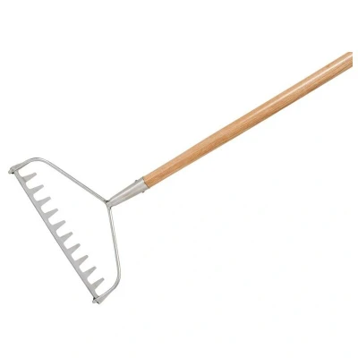 General description The Kent & Stowe Garden Life Soil Rake is designed for cultivating and leveling soil in all garden areas. It features a stainless steel head for durability and corrosion resistance, making it suitable for long-term use. This lightweight and practical tool is ideal for final soil preparation and surface cultivation, especially for gardeners seeking easier-to-handle equipment. Technical specifications Handle Material: FSC®-approved ash wood Handle Diameter: 28mm, tapered Head Size: 270 x 309mm Overall Length: 1300mm Number of Tines: 12 Weight: approximately 0.96kg Compatibility and accessories Compatible with standard garden soil and surface cultivation tasks No additional accessories required for basic use Installation Assembling the rake involves attaching the handle to the head if not pre-assembled Ensure the handle is securely fitted to prevent wobbling during use Usage Use for cultivating surface soil, breaking up compacted earth, and leveling soil beds Suitable