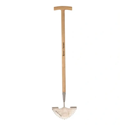 General description This Kent & Stowe Edging Iron is designed for creating neat and precise borders between lawns and garden beds. It features a traditional half-moon shape with a comfortable, large T-handle made from FSC®-approved ash wood. The tool is handcrafted, ensuring high-quality craftsmanship and durability. Its stainless steel head provides excellent corrosion resistance for long-lasting performance. Technical specifications Head Size: 215 x 105mm Length: approximately 1000mm Diameter of handle: 32mm Material: stainless steel head, FSC®-approved ash wood handle Compatibility and accessories Suitable for use in garden edging, lawn borders, and landscape maintenance Compatible with various garden tools for edging and landscaping Installation Insert the edging iron into the soil at the desired border line Apply downward pressure to create a clean edge Use the T-handle for leverage and control during edging Usage Use for precise edging between lawns and borders Ideal for