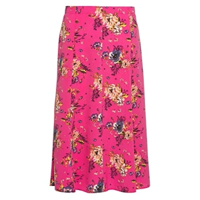 KENTEX ONLINE Ladies Floral Skirt Lightweight Polyester Fabric Half Elasticated Waist 8 Panels 31 Inch Length (16, Cerise Floral)