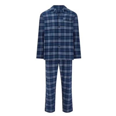 KENTEX ONLINE Mens Brushed Cotton Pyjama Set Nightwear Flannelette Pyjamas Striped Pattern Design (XX LARGE, NAVY HJ)