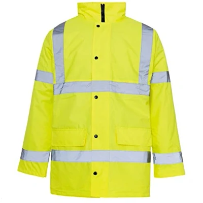 Mens High Visibility Jacket With Concealed Hood (2 STYLE VARIATIONS) PADDED Long Length Jacket Soft Micro Fleece On Collor For Extra Comfort Phone Pocket, Multi Pockets Outside, Inside Pockets (pockets may differ to the one shown) S-38" M-40" L-43" XL-44" XXL-46"-48" 3XL-50"-52" 4XL-54"-56" 5XL-58" 6XL-60" 62"