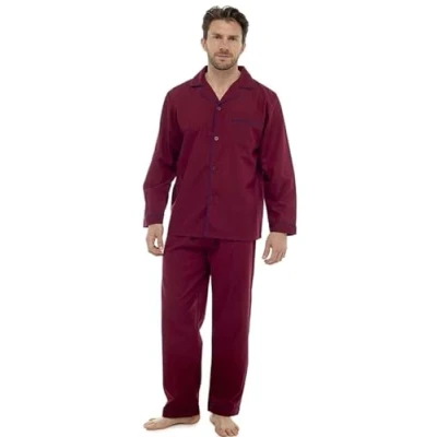 MENS LONG TRADITIONAL PYJAMA SET Packaged in see through gift bag Machine Washable Fastening: Buttoned Long Sleeve comfortable elastic waist adjustable button fastening