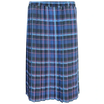 KENTEX ONLINE Womens Long Pleated Skirt Tartan Check Ladies Stretch Box Pleat Elasticated Waist Waistband Skirts (X Large (20 22), Royal Blue)