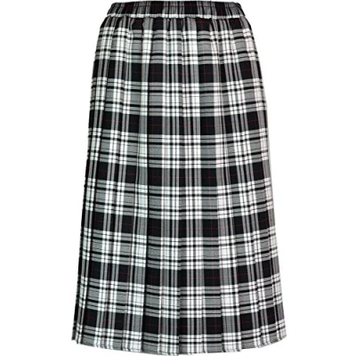KENTEX ONLINE Womens Long Pleated Skirt Tartan Check Ladies Stretch Box Pleat Elasticated Waist Waistband Skirts (XX Large (24 26), Black White)