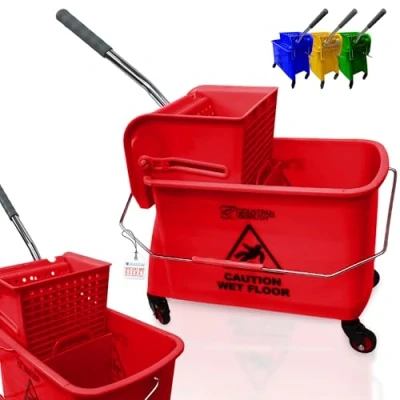 Professional Mop Bucket with Wringer - This commercial mop bucket with wringer is designed for efficient cleaning, featuring a built-in wringer to easily squeeze out excess water. Ideal for industrial mop and bucket uses in various professional environments. Durable Plastic Bucket with Wheels - Constructed from high-quality materials, this plastic bucket is equipped with 4 detachable wheels for effortless mobility. Ideal for mop and buckets applications in hotels, offices, and more. Versatile Flat Mop and Buckets Sets - Perfect for flat mop and buckets sets, this compact mop and bucket set is suitable for diverse cleaning tasks, ensuring cleanliness in supermarkets, restaurants, and schools with ease. Large Capacity Cleaning Bucket - This cleaning bucket offers ample capacity for extensive mopping needs, making it an essential component of a floor mop and bucket set. The bucket and mop set is perfect for handling large areas. Buckets with Handles for Easy Use - Designed for convenience, these buckets with handles allow for easy lifting and transportation. Ideal for mop buckets sets separate dirty water, ensuring a clean and efficient mopping process.
