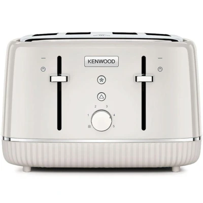 JoybuyThe Kenwood Elegancy 4-Slice Toaster, 1800 W in Cream features classic fluted detailing, independent controls, 5 browning levels, defrost function, hi-rise lift, removable crumb tray, and cord storage, delivering stylish design and customizable toasting for any kitchen.