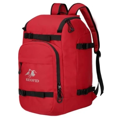 KEOFID Ski Boot Bag for Men and women, 50L travel backpack Snowboard Bag, Waterproof Goggles, Gloves, Snowboard, Helmet & Accessories(red)