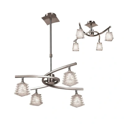 Keops Telescopic Ceiling Pendant Semi Flush Convertible 4 Light G9, Satin Nickel