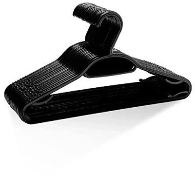 30 PREMIUM HANGERS: Providing you with a lovely 60 pack of great quality hangers designed to store as much as possible. MAX ORGANISATION: Specially designed with a number of features to help you keep your wardrobe completely organised. With the tie bar, strap hooks and securing lip, keep your hard to hang clothes as well as various accessories all on one hanger, be it ties, dresses, vests and more! NON-SLIP: The plastic material is resistant to slipping, alongside with the notches on each side near the shoulder area make sure your clothes always stay on. The small lateral hooks can also be used for awkward strappy tops and bras that can be a bother to hang. SPACE SAVING: With a slimline design, yet still retaining strength and rigidity, these premium plastic hangers take up little space and are heavy duty enough to hold any clothing you need; making them perfect for your needs as your wardrobe grows! DIMENSIONS: 39 x 21 x 0.04cm (HxWxL); Supports up to 5kg