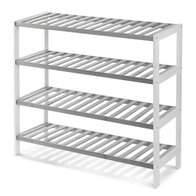 KEPLIN 4 Tier Natural Bamboo Shoe Rack Easy Assembly Strong Design Shelf Organiser Ideal for Bedroom, Bathroom, Hallway & Small Spaces Large Capacity Up to 12 Pairs of Shoes, 67x70x24.5cm, Grey/White