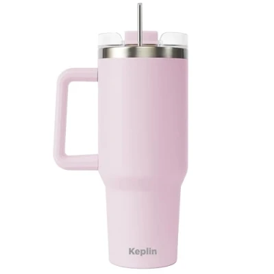 KEPLIN 40 oz / 1200 ml Insulated Travel Tumbler Double Wall Stainless Steel Cup with Leak Proof Lid, Thermal Flask Keeps Drinks Hot & Cold, Dishwasher Safe, Fits Car Holders Cream Pink