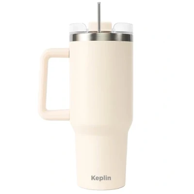 KEPLIN 40 oz / 1200 ml Insulated Travel Tumbler Double Wall Stainless Steel Cup with Leak Proof Lid, Thermal Flask Keeps Drinks Hot & Cold, Dishwasher Safe, Fits Car Holders Cream White