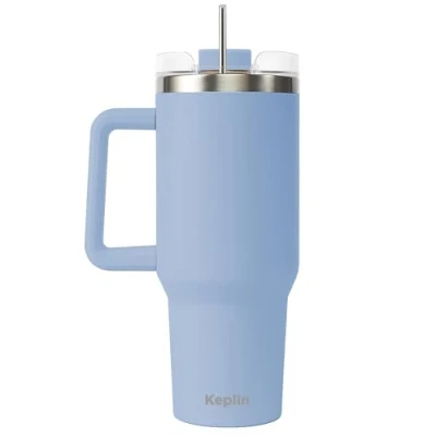 KEPLIN 40 oz / 1200 ml Insulated Travel Tumbler Double Wall Stainless Steel Cup with Leak Proof Lid, Thermal Flask Keeps Drinks Hot & Cold, Dishwasher Safe, Fits Car Holders Light Blue