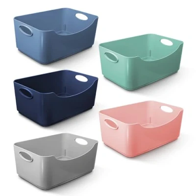 KEPLIN 5 Pack Multicolour Plastic Studio Storage Basket, Portable Container Boxes with Handles for Organisation in Home & Office, Shelfs, Drawers, Kitchen Cupboards (Multicolour, of 5)
