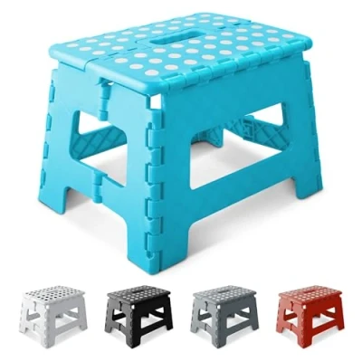 KEPLIN 9 Inch Heavy Duty Folding Step Stool Non Slip Foldable Footstool for Toddlers, Children & Adults Portable, Lightweight Plastic Footstep w/Carrying Handle Indoor or Outdoor (Blue)