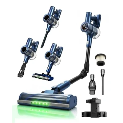 Powerful 350W Motor with Long-Lasting Battery: Experience intense suction with a 350W motor and 3-speed modes (8KPA/15KPA/27KPA) for all surfaces. The 25.9V 2500mAh battery delivers up to 60 minutes runtime—ideal for whole-home deep cleaning Easy Reach with Bendable Wand & Lightweight Build: Tackle hard-to-reach areas effortlessly using the flexible, bendable wand—perfect for cleaning under furniture without bending. Weighs only 1.3kg for easy handling and daily use in any home setting Smart LED Display & One-Touch Control: Stay in control with a large LED display showing battery life, suction level, and maintenance alerts. Switch modes or check performance at a glance for a seamless, intuitive vacuuming experience Advanced 6-Stage Filtration System: Includes multi-cyclone tech, pre/post HEPA filters, metal mesh, and centrifugal separation to trap 99.9% of dust and allergens—ensuring cleaner air and a healthier home environment Self-Standing Design & Multi-Surface Versatility: Parks upright on its own and includes a wall mount for compact storage. Works great on carpet, tile, wood, and upholstery. Comes with crevice tools and LED-lit brush head for spotless precision cleaning, Manufacturer: KEPLIN