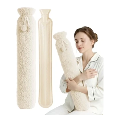Extra Long Full Body Warmth – KEPLIN 2L extra long hot water bottle with luxury fleece cover keeps your whole body warm, ideal for cuddling in bed or on the sofa during cold winter nights. Durable Natural Rubber – Made from high-quality natural rubber for maximum safety, durability, and heat retention; designed to outperform traditional bottles with long-lasting warmth. Soothing Pain Relief – Flexible and extra-long design makes it perfect for targeting neck, shoulders, back, abdomen, and legs, helping relieve cramps, muscle tension, and aches. Soft & Cosy Fleece Cover – Super soft fleece cover adds comfort and insulation, preventing direct contact with hot surfaces while providing a cosy, snuggly feel against the skin. All-Year Versatility – Use warm in winter for comfort or fill with cold water in summer for cooling relief; perfect gift for Christmas, birthdays, or Mother’s Day. Dimensions: approx. 72cm x 12cm, Weight: 450g.