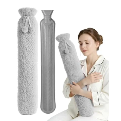 Extra Long Full Body Warmth – KEPLIN 2L extra long hot water bottle with luxury fleece cover keeps your whole body warm, ideal for cuddling in bed or on the sofa during cold winter nights. Durable Natural Rubber – Made from high-quality natural rubber for maximum safety, durability, and heat retention; designed to outperform traditional bottles with long-lasting warmth. Soothing Pain Relief – Flexible and extra-long design makes it perfect for targeting neck, shoulders, back, abdomen, and legs, helping relieve cramps, muscle tension, and aches. Soft & Cosy Fleece Cover – Super soft fleece cover adds comfort and insulation, preventing direct contact with hot surfaces while providing a cosy, snuggly feel against the skin. All-Year Versatility – Use warm in winter for comfort or fill with cold water in summer for cooling relief; perfect gift for Christmas, birthdays, or Mother’s Day. Dimensions: approx. 72cm x 12cm, Weight: 450g.
