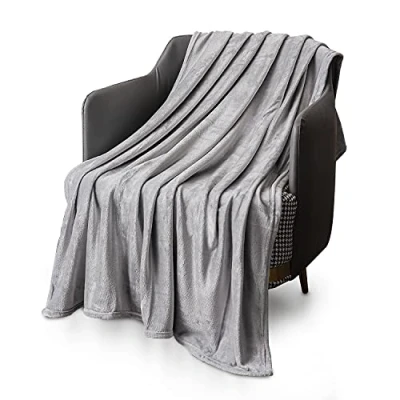 KEPLIN Flannel Blanket Large Bedspread 150 x 200 cm Soft Fluffy Warm Light Microfiber Fabric Design for Duvet Cover Quilt Rug Perfect Adults or Children's Gift (Silver Grey,Double)