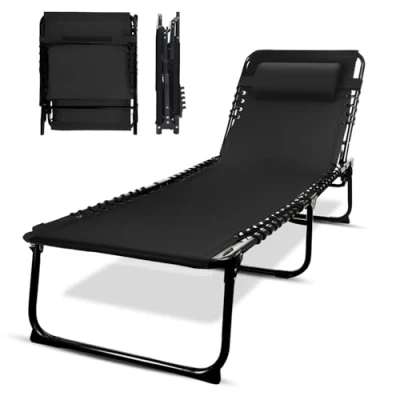 KEPLIN Foldable Recliner Sun Lounger 600D Oxford Fabric Adjustable Back and Leg Rests Lightweight Portable Compact Space Saving Design Durable Outdoor Use 190 x 65 30 cm (Black)