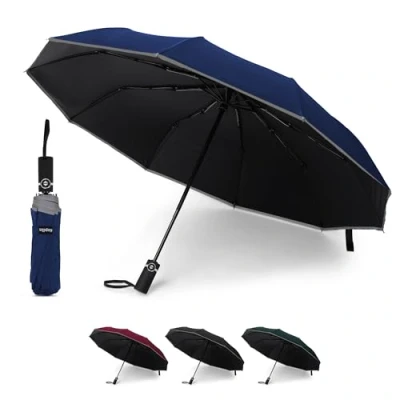 KEPLIN Folding Travel Umbrella, Automatic Open & Close Ergonomic Handle, Golf Umbrella 10 Ribs, Portable Slim Strong Lightweight Approved (Navy)