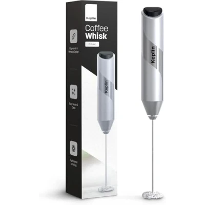Keplin Handheld Milk Frother Stainless Steel Electric Whisk Portable Battery Operated Coffee Stirrer for Lattes, Matcha, Protein Shakes Ergonomic, Compact, Easy to Clean & Use (Silver)
