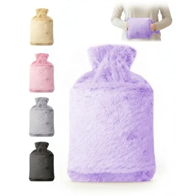 KEPLIN Hot Water Bottle 2L with Soft Faux Fur Cover, Leakproof Natural Rubber, Long Lasting Warmth for Neck, Back & Hands, Fluffy Cosy Design Men Women, Winter Comfort Liliac