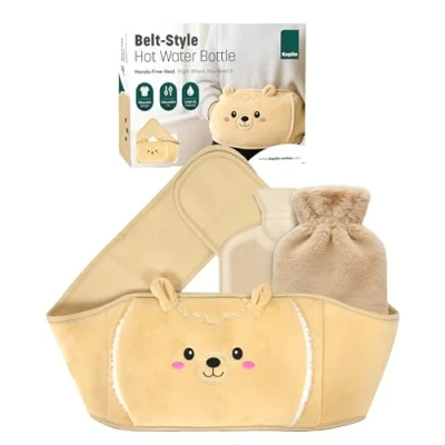 KEPLIN Hot Water Bottle Belt with Plush Waist Cover 2L Premium Natural Rubber Bag for Cramps & Muscle Relaxation Safe, Durable, Long Lasting Heat Therapy Cream Lama