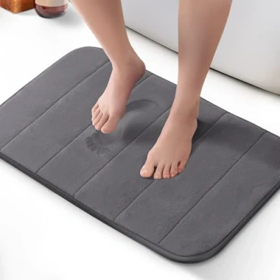 KEPLIN Memory Foam Bath Mat Ultra Soft, Highly Absorbent, Non Slip, Machine Washable Luxurious Comfort for Home & Bathroom Floors (Dark Grey, 40 x 60cm)
