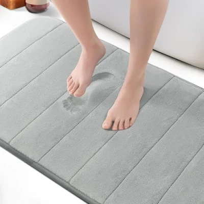 KEPLIN Memory Foam Bath Mat Ultra Soft, Highly Absorbent, Non Slip, Machine Washable Luxurious Comfort for Home & Bathroom Floors (Light Grey, 60 x 90cm)