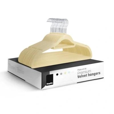 KEPLIN Velvet Hangers 20 Pack Non Slip Clothes with Tie Bar & 360 Hook Durable Sturdy, Space Saving Wardrobe Organisers for Suits, Jackets Home Storage Solution (Cream)