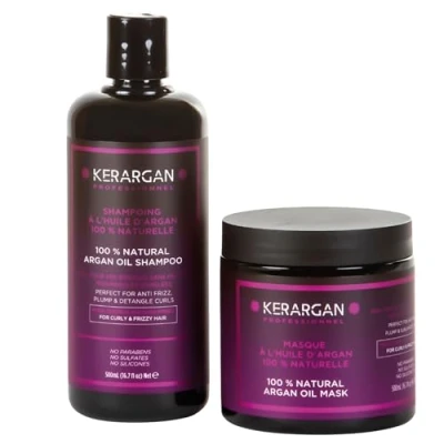 Kerargan Argan Oil Shampoo and Mask to nourish, moisturise protect your curls Ideal For straightening dry damaged hair Sulphate, paraben silicone free 2x500 ml