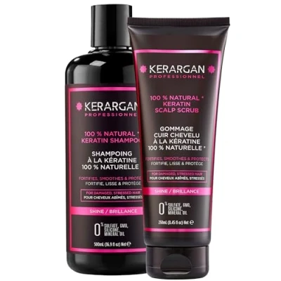 Kerargan Shampoo and Scalp Scrub Duo with Keratin for Damaged Stressed Hair Purifies, Strengthens, Protects Sulfate Free, Paraben Silicone Free 500ml + 250ml