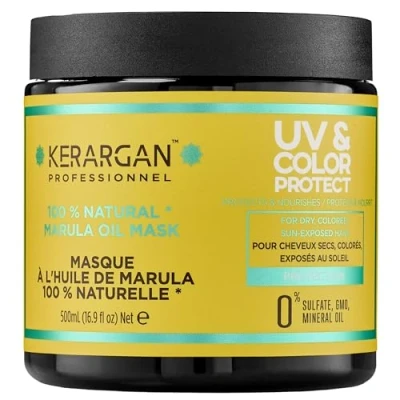 Kerargan UV & Color Protective Hair Mask with Marula Oil for Dry and Colored Hydrates, Revitalizes, Protects Sulfate Free, GMO Mineral Free 16.9 Fl oz