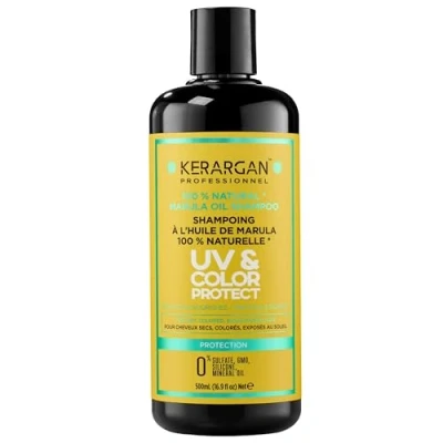 Kerargan UV & Color Protective Shampoo with Marula Oil for Dry and Colored Hair Cleanses, Protects, Nourishes Sulfate Free, GMO Silicone Mineral Free 16.9 Fl oz