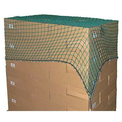 Covering net made of braided polypropylene (knotless) for car trailers, agricultural trailers, open containers, truck loading areas etc retracted rubber tension cord 5 mm for secure tension and easy attachment reinforced stable edge thanks to sewn-in cord with additional attachment loops at the corners