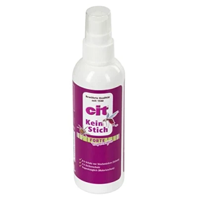 Cit KeinStich forte is highly concentrated and works for up to 8 hours on mosquitoes and up to 4 hours on ticks Cit KeinStich forte is dermatologically tested and found to be "very good" and suitable for children aged two and over Cit Keinstich forte is ideal for riders, hunters, farmers and all people who move a lot in nature Cit In addition to application on the skin, no stitch forte with aqueous consistency is also intended to spray clothes etc Cit KeinStich forte is also praised as tropical