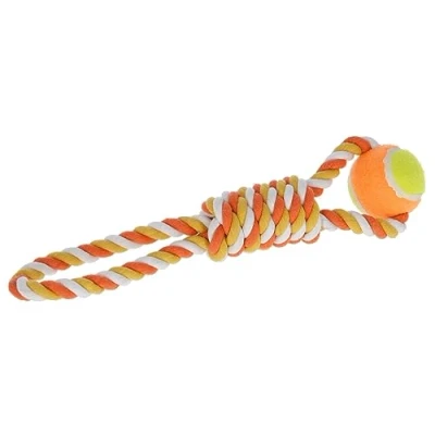 Made from cotton With tennis ball Cotton and jute dog toy Great for fetch