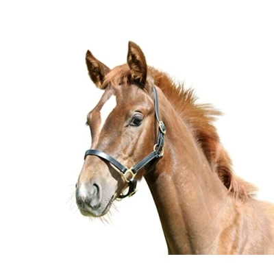 hardwearing leather halter in harmony with the foal's needs: narrow leather strapping, light but durable fittings, easy to adjust genuine leather