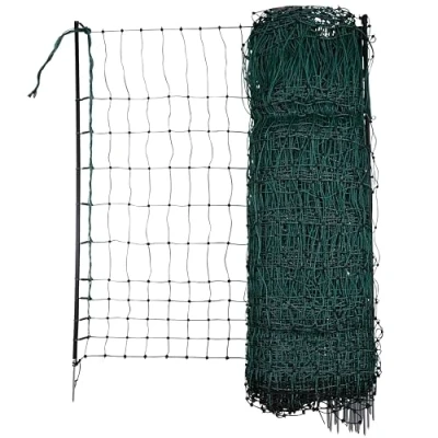 MOBILE CHICKEN FENCE - The net is easy to set up and disassemble and set up in different places. So you can always choose the perfect place for your pets. Low mesh size: thanks to its narrow mesh width in the lower area, even small chickens cannot slip through the fence. High workmanship and durability: thanks to tightly welded knot points, the net provides a firm hold and is stable. The upper strand is additionally reinforced. Use: the fence can be used for smaller poultry species, but also lambs. For turkey and geese, electrifiable nets. Delivery and assembly: the poultry net is delivered fully assembled and only needs to be rolled out and the ground spikes are anchored to the ground.
