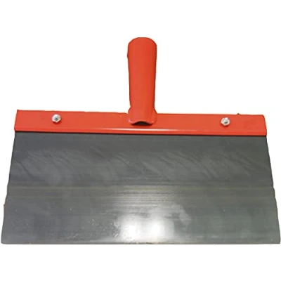 Metal. Spring steel with 1 mm thickness. Box contents include 1 scraper without handle. Handle free bump scraper to remove stubborn dirt from the floor.