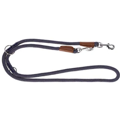 Polyproplyene nylon round lead Particularly stable thanks to internal polypropylene ropes With appliqués made of faux leather, sturdy Chrome plated carabiners