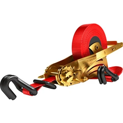 strap up to 5.0 m in length allows a wider area of use. Also suitable for professional use: only TÜV-certified retractable with a tensile force of up to 3,000 kg only TÜV-certified automatic lashing strap approved for use by just one person, since the design prevents the strap from snapping back the D-ring means it can also be anchored to beams instead of just lashing points. High pre-tensile force thanks to the long grip, load sits securely with just slight use of force high-quality and resilient retracting springs appealing packaging with "test" function