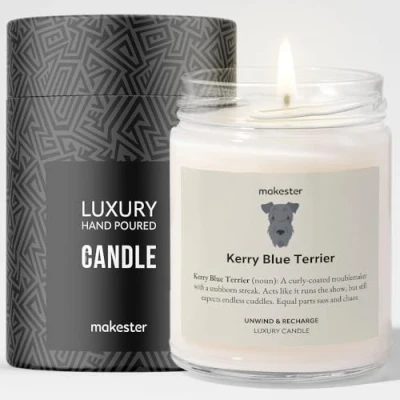 Kerry Blue Terrier Candle Over 100+ Breeds Luxury Soy Wax Vanilla, Jasmine, Sugared Almond Gift Makester